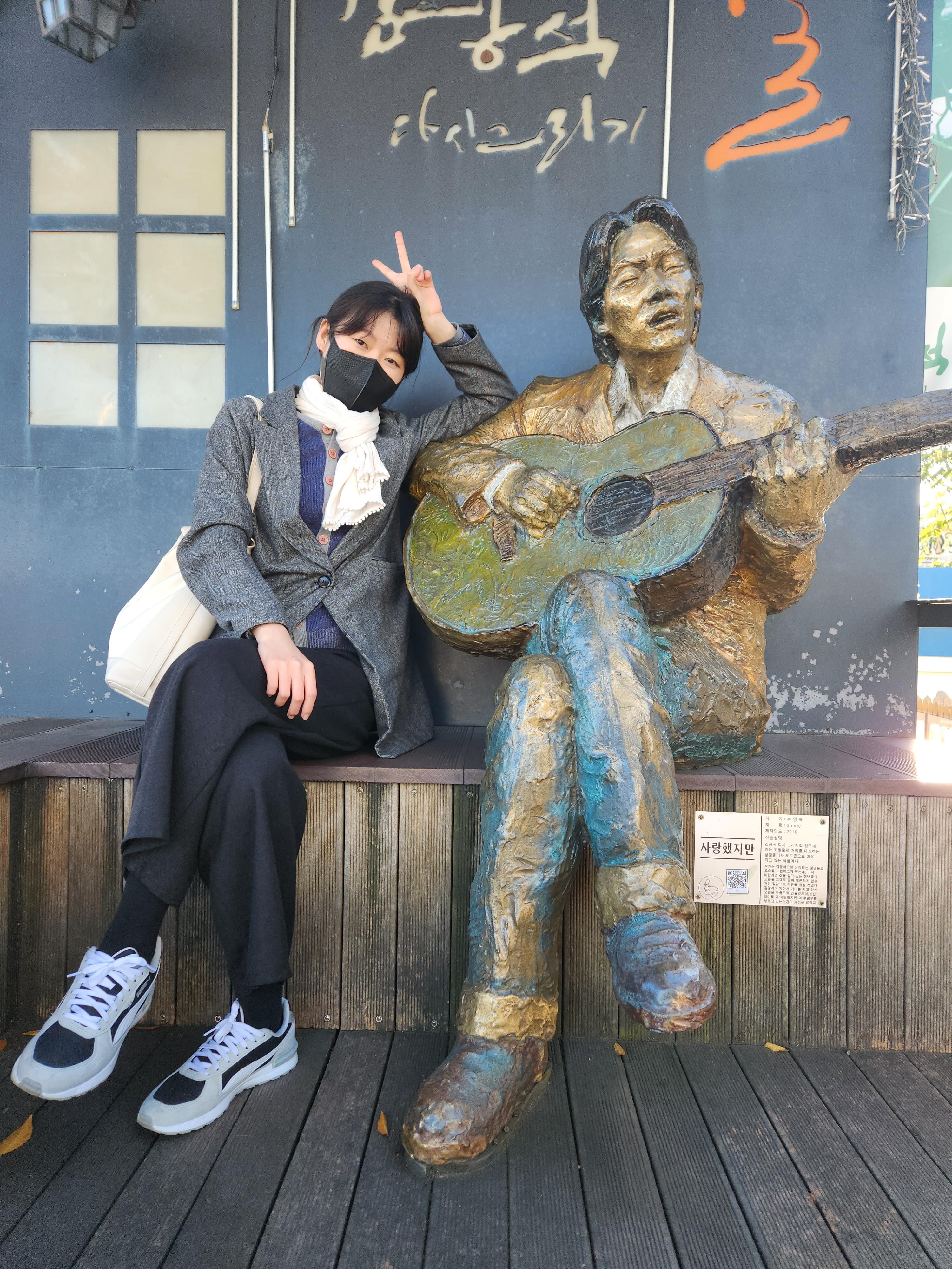 김광석 다시 그리기 길에서 열심히 서로의 사진을 찍어주었다. 코로나 터지기 전에 친구들이랑 김광석길에 몇 번 갔을 땐 사람들이 좀 북적였는데, 토요일 주말임에도 불구하고 예전만큼 북적이진 않았다. 버스킹도 없어서 아쉬웠다.