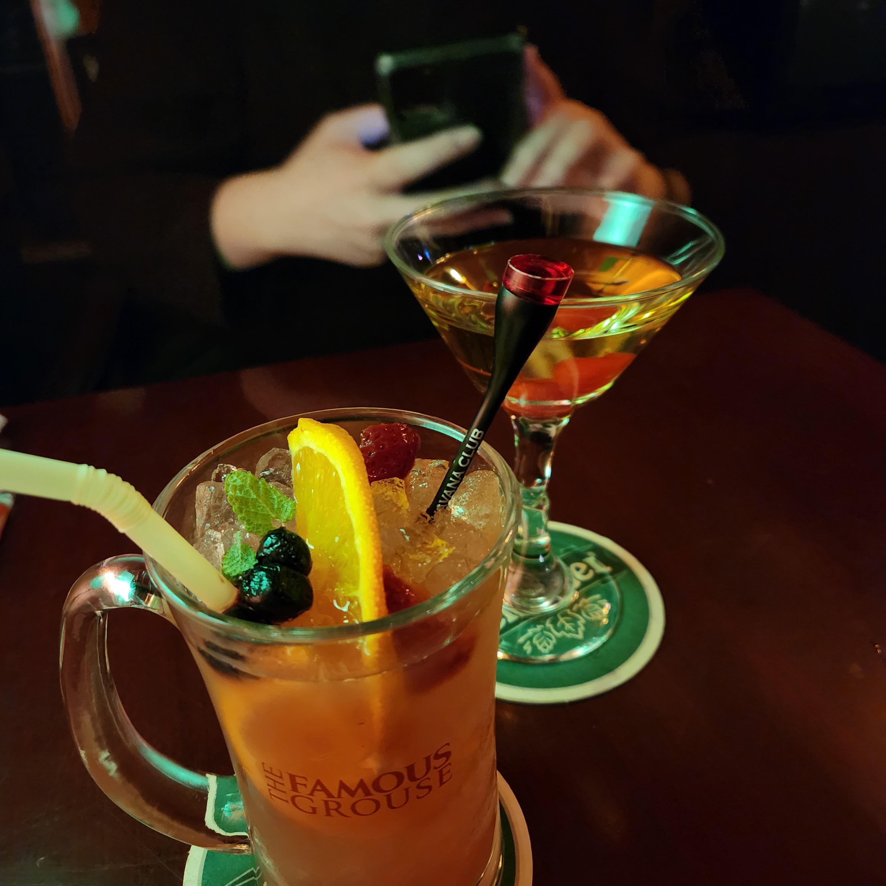 사랑의 천사 웨딩피치는 복숭아, 오렌지 맛이 나는 달콤 상큼한 칵테일이다. 달달한 에이드 같은 느낌! 이것도 맛있었지만, 상큼하고 깔끔한 맛인 라일락꽃이 내 입맛에는 더 맞았다. 노르웨이의 숲은 메뉴판에 위스키, 바나나, 복숭아, 라임의 술이라고 설명이 적혀있다. 설명만 보면 이게 대체 뭔 술인가 싶은데 먹어보면 깔끔하고 맛있다! 친구는 노르웨이의 숲을 주문할 때 도수를 더 세게 해달라고 부탁해서 그런지 체리향과 함께 알코올 향이 확 올라왔다. 알쓰인 나는 마시자마자 알코올 맛에 놀라 코와 귀로 알코올의 증기를 뿜어냈다. 술에 강한 내 친구는 대만족 하며 칵테일을 입에 털어 넣었다. 와우.