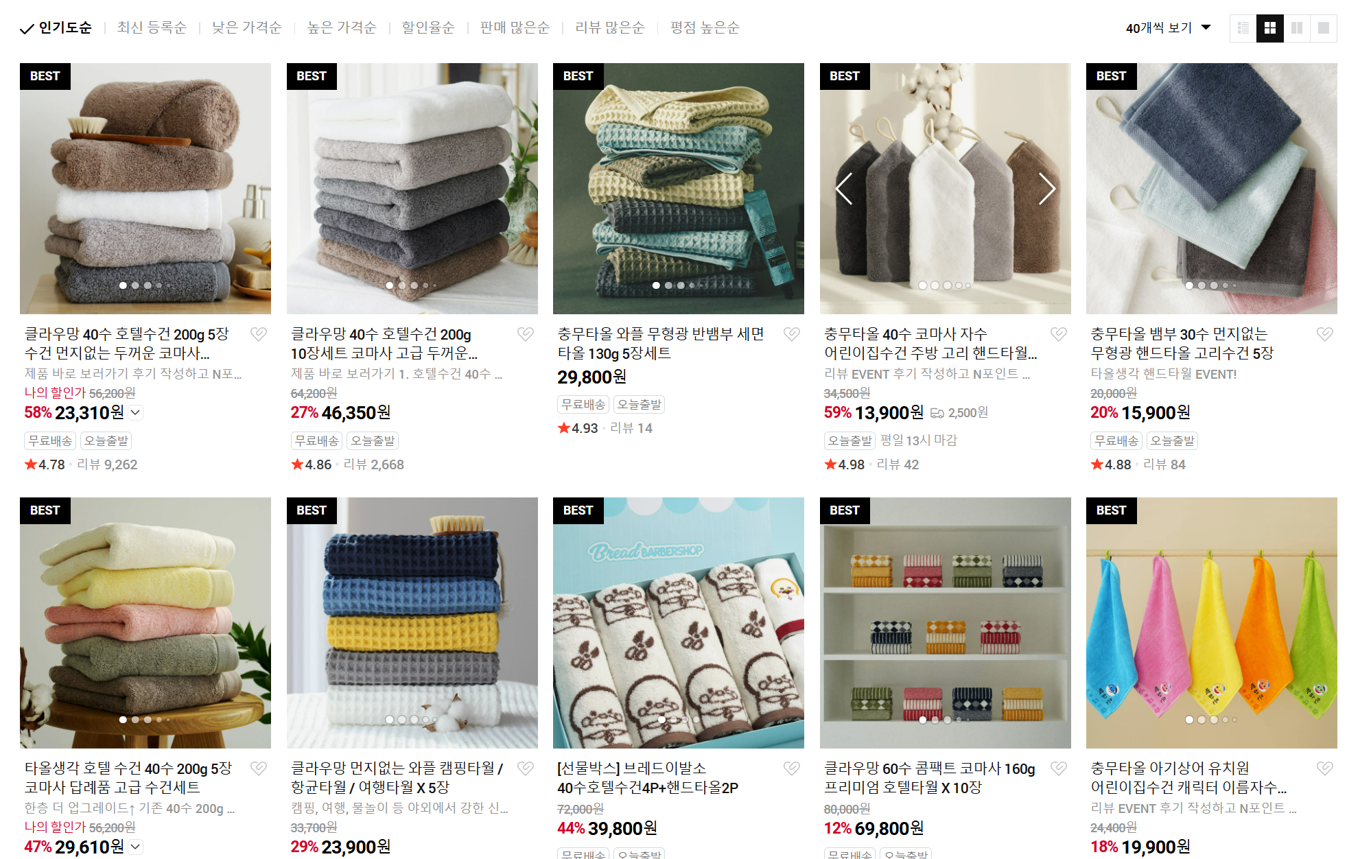 호텔수건 30수 170g 10매 기준으로 현재 3만원 이내여서 저렴한 편이라 군말없이 주문했다.