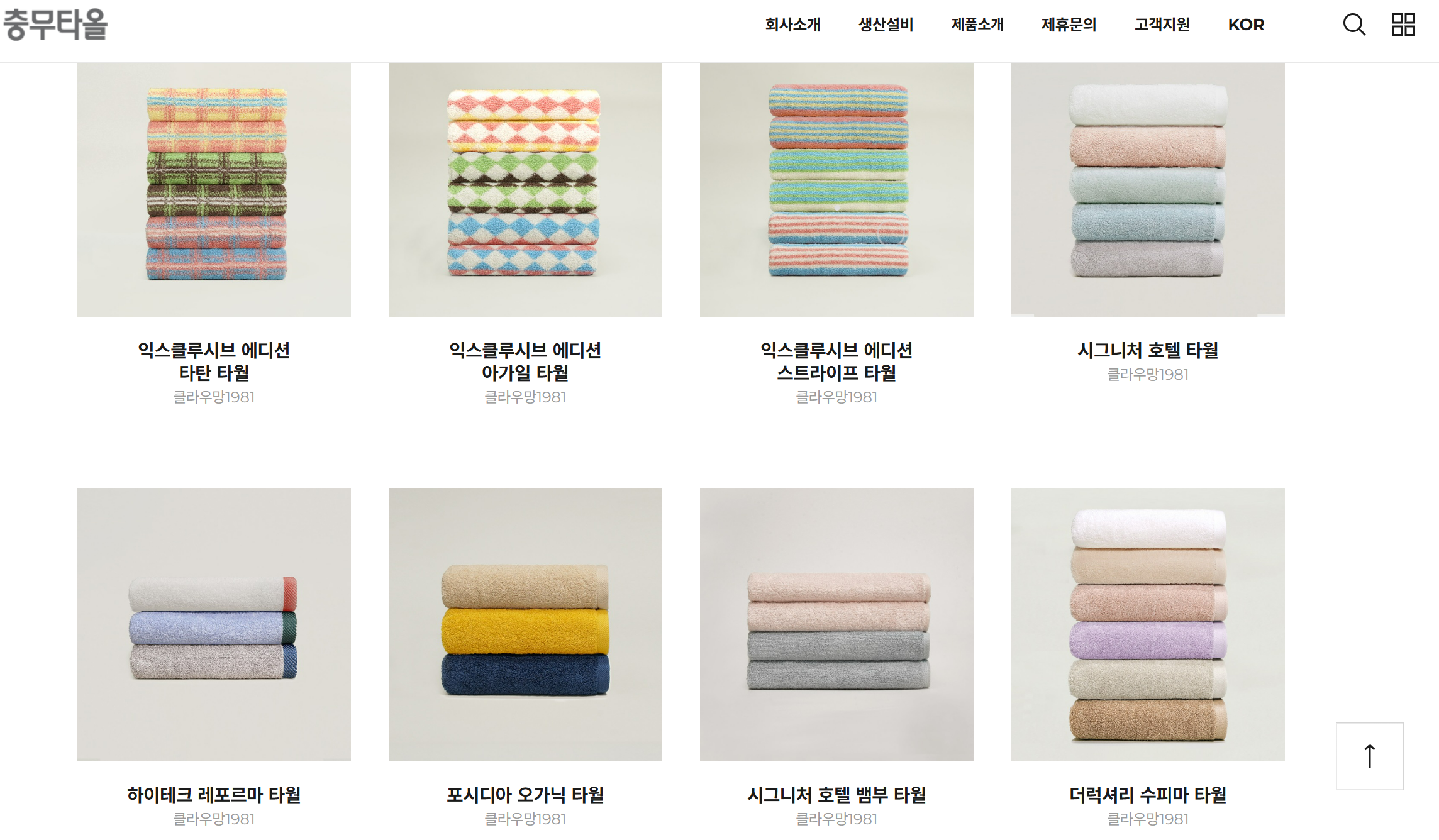 충무타올은 44년 전통의 수건 제조 업체로 클라우망 스탠다드, 클라우망1981 등